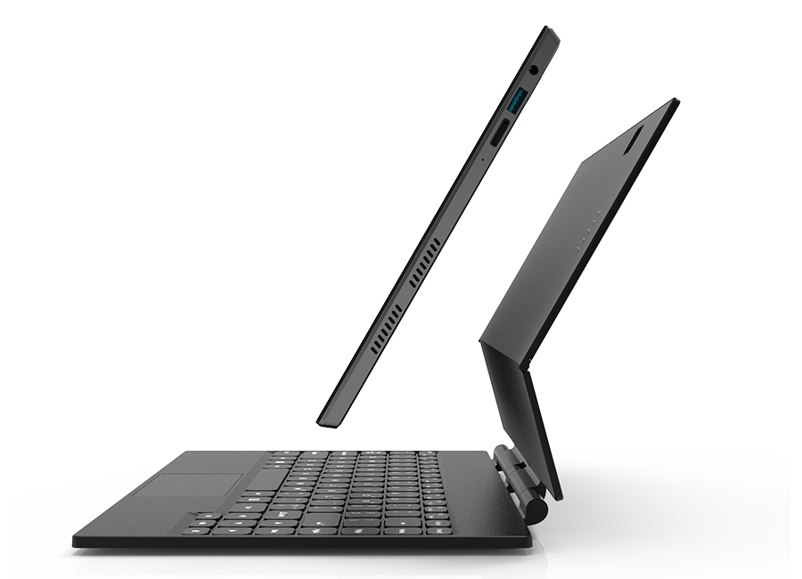 – Detachable magnetic keyboard with floating attachment and smart control click
